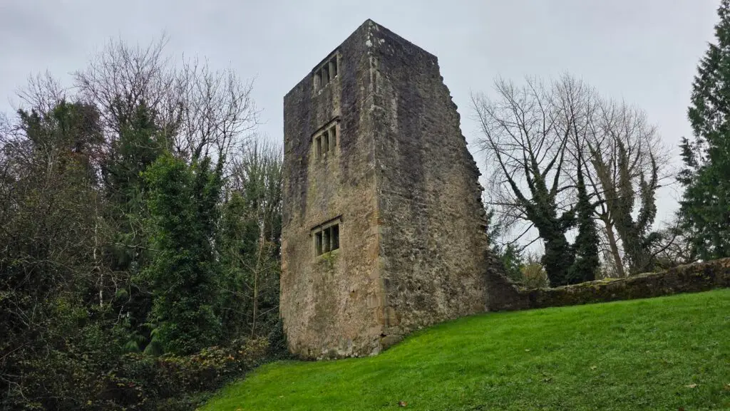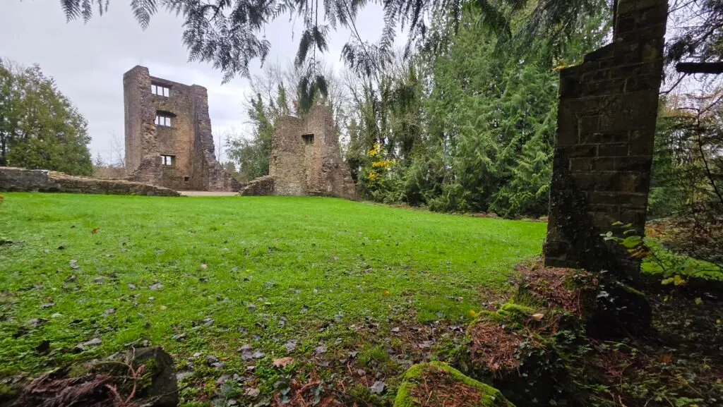 Mrs. M and I took Lucky and Milo out for a wander through the woods. Milo spent half the walk claiming everything in sight (classic small-dog energy), while Lucky lumbered happily through the leaves. We stopped by the ruins of Old Castle Archdale itself, apparently a State Care Monument, though what that actually means is anyone’s guess, before heading down towards Tom’s Island marina.